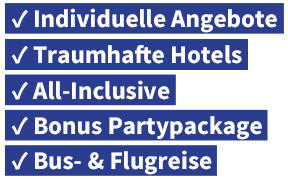 Zu einem perfekten Abschluss gehört natürlich auch eine spaßige Abifahrt. Dank der engen Zusammenarbeit mit unseren Partnern können wir euch Abireisen mit hohem Spaßfaktor garantieren. Ob nach Spanien oder doch eher nach Bulgarien – wir sind in der Lage fast jeden Wunsch für eure Abifahrt zu erfüllen.